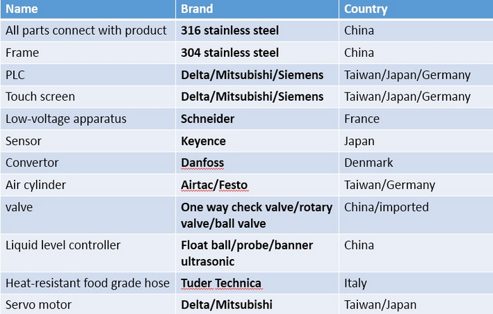 1. Материјал свих делова кроз које производ тече може бити опремљен у складу са карактеристикама производа, тако да су материјали идеални за попуњавање већине производа од јаке корозије.